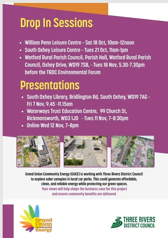 Grand Union Community Energy and Three Rivers District Council are inviting local residents to help shape local renewable energy projects.
